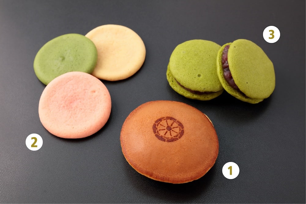 1.車楽(220円)は山車の車輪をイメージしたどら焼き