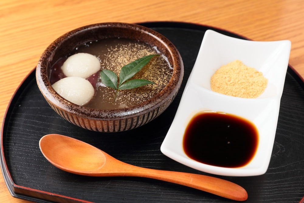 注文ごとに練り上げる、冬限定の温わらび餅(1,100円)は14時から注文可。とろとろ食感は、できたてだけの贅沢。黒蜜やきな粉を付けても