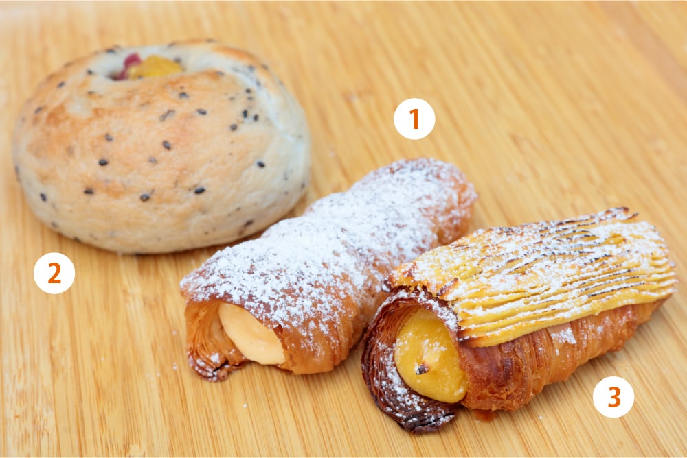 1.さくさくコルネ(220円)。強力粉を使ってバリッとした食感の生地に