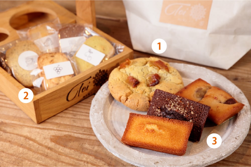 3.フィナンシェ各種(320円~)はしっとり&ふんわり